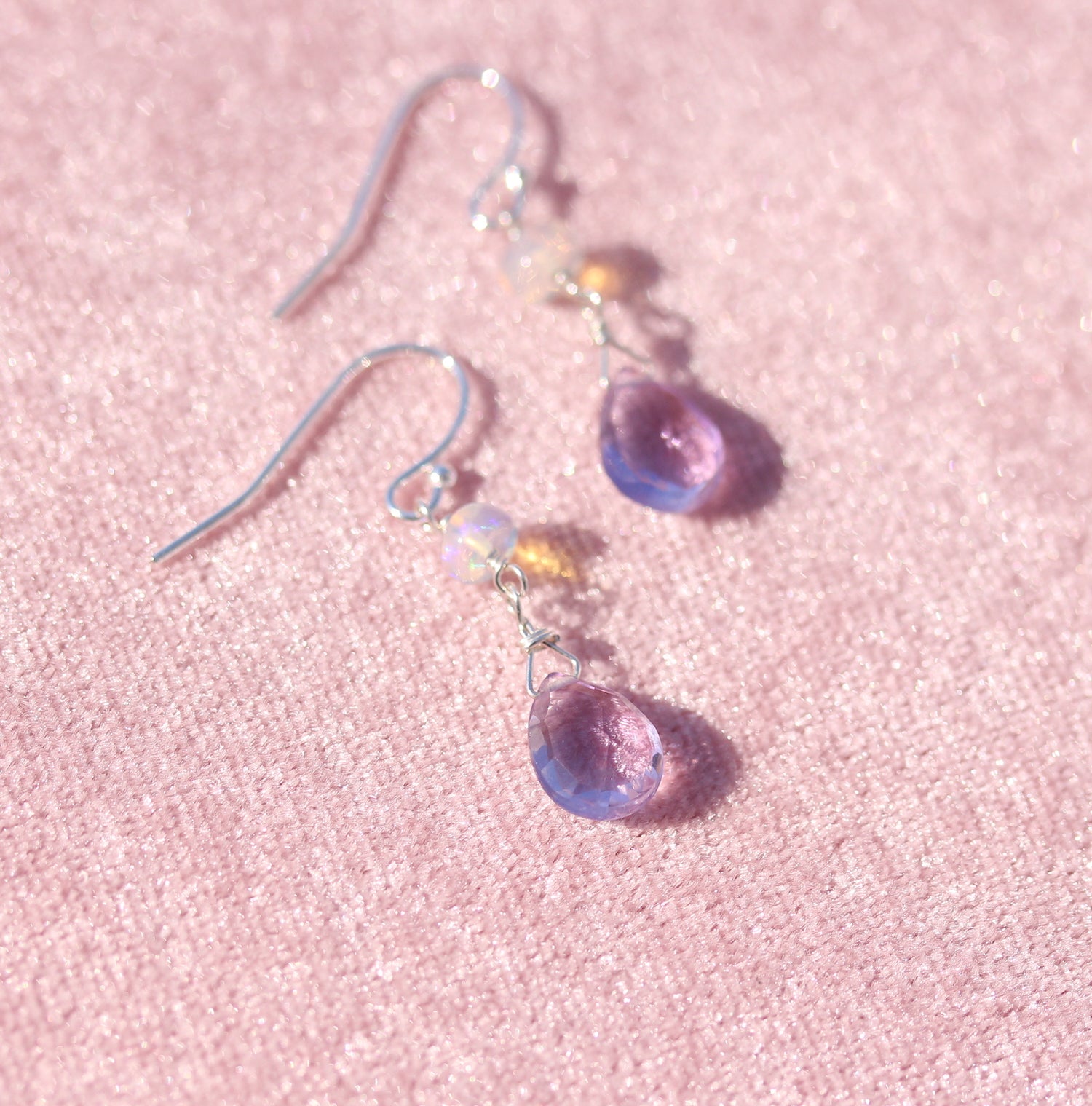 Opal and Amethyst Drop Earrings