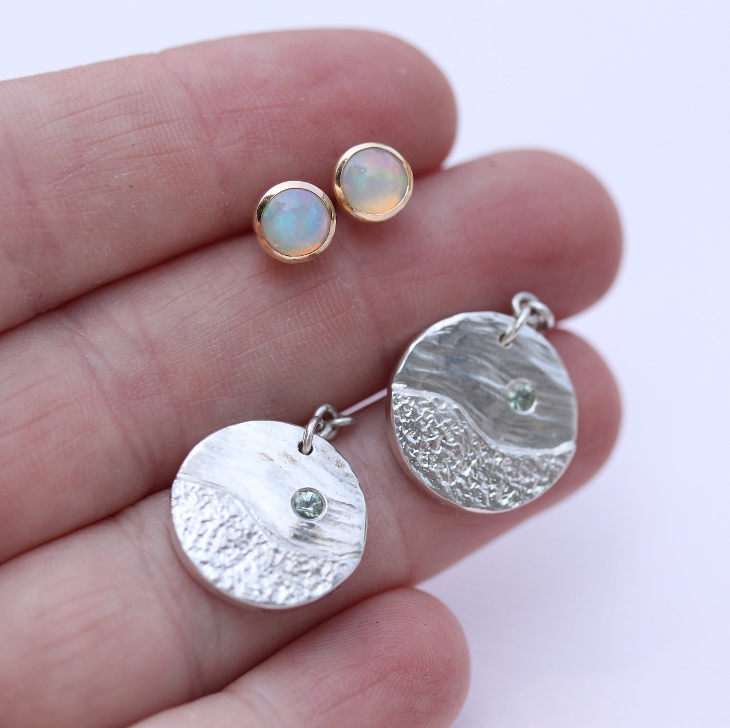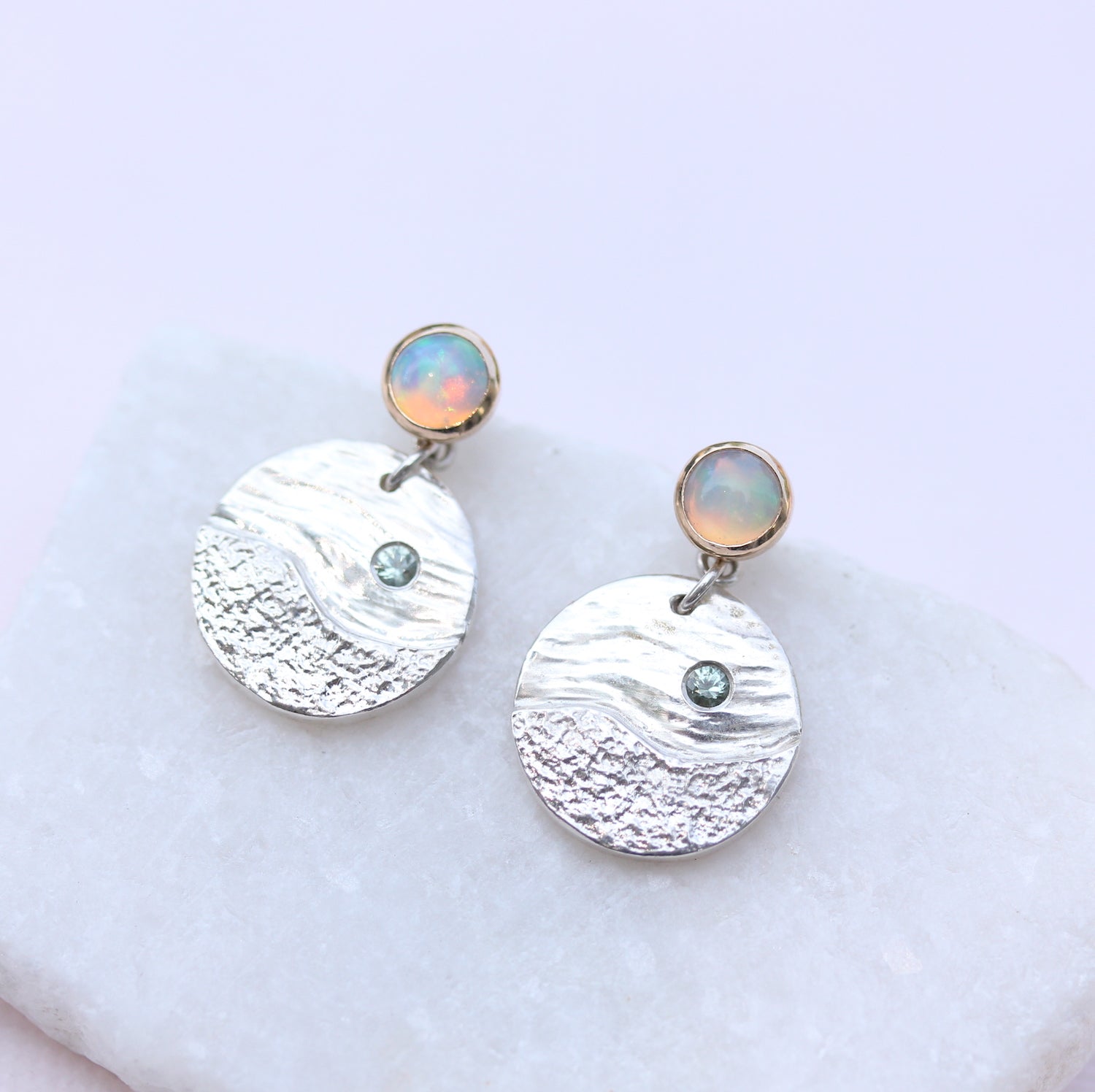 • Small Opal earrings - gemstone is 4mm opal with approx. 15mm freshwater pearl below. These earrings are also two in one! Wear the opals alone or with the smaller beach medallion and freshwater pearl below.