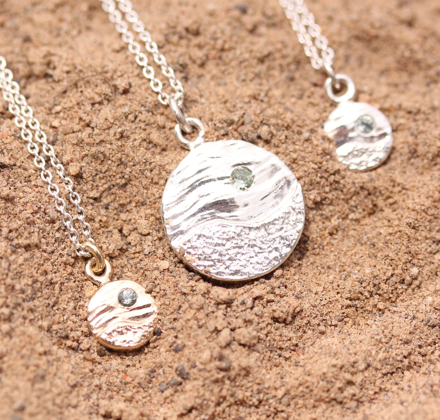 These necklaces were inspired by all of the best things at the beach. Water and sand.