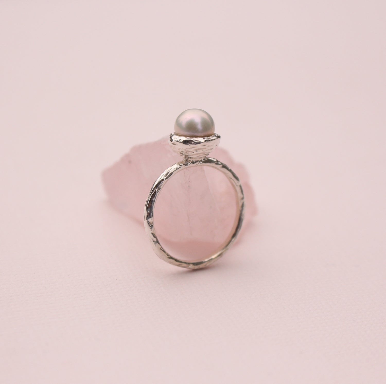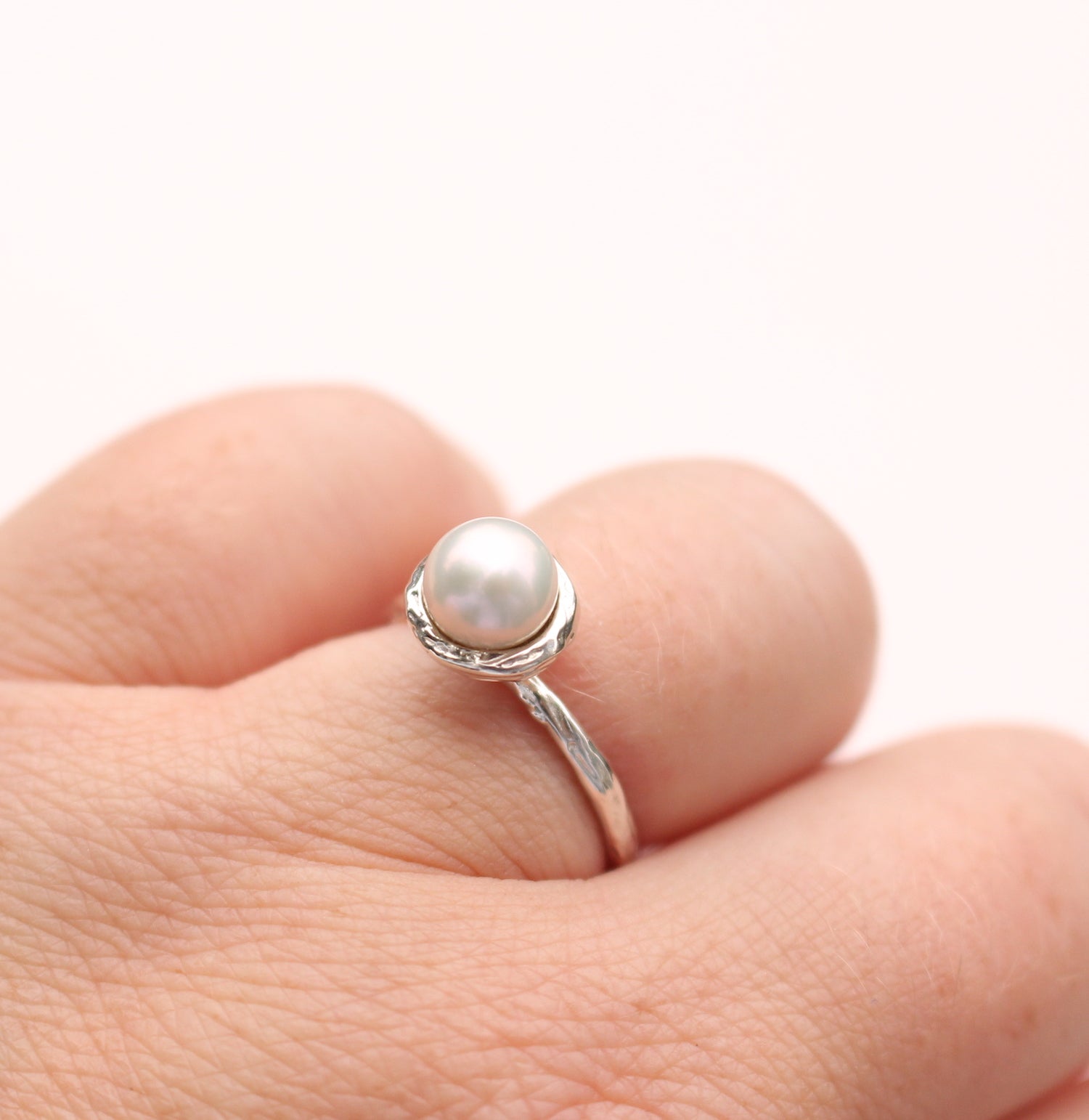 A unique twist on the classic pearl ring, this design features a lustrous freshwater pearl cradled in a nest-like branch setting. The organic silver details make the ring durable while still feeling delicate and elegant on the hand.