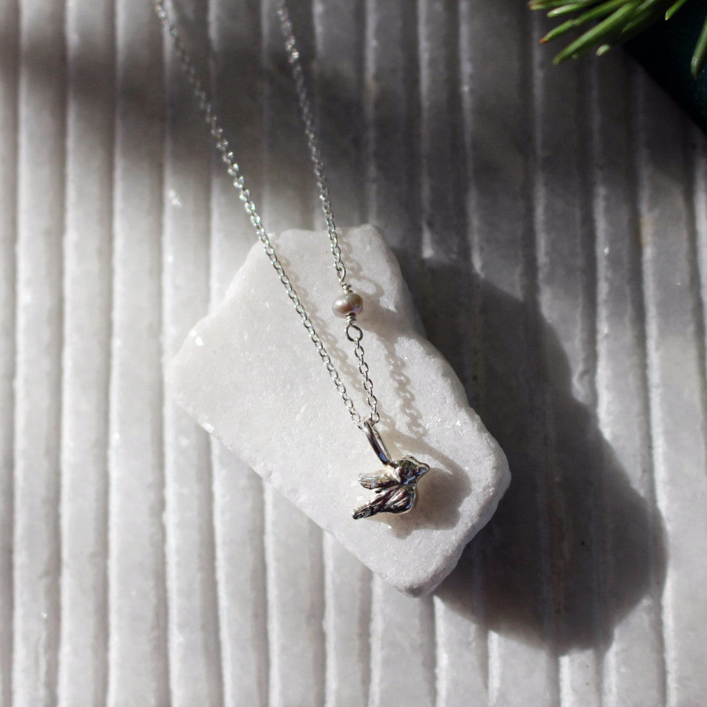 Danny bird necklace - Sterling silver / Freshwater pearl is backordered and will ship as soon as it is back in stock.