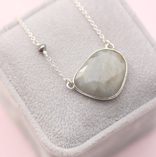 Rose cut Sapphire Necklace / Grey - 1 - SOLD OUT / Sterling silver / Gray Rose cut sapphire and freshwater pearl is backordered and will ship as soon as it is back in stock.