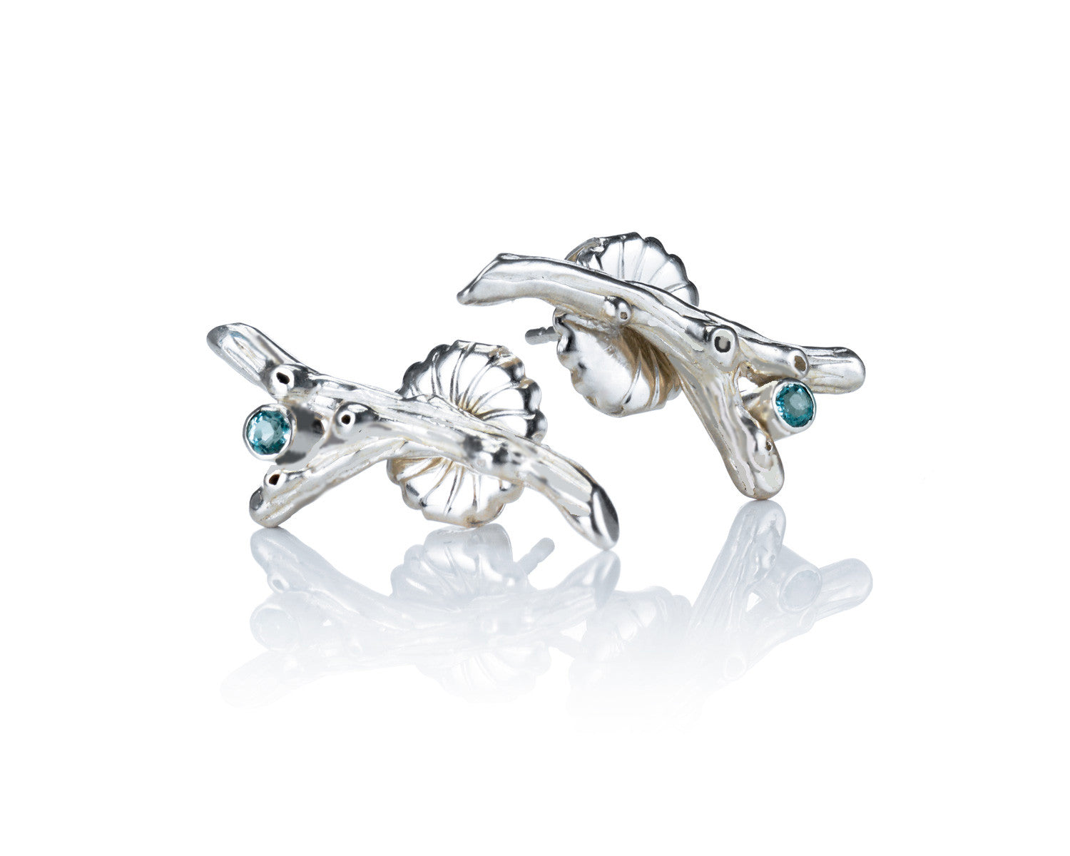 Process: Earrings were hand carved in wax and cast in sterling silver. Gemstones were hand set.