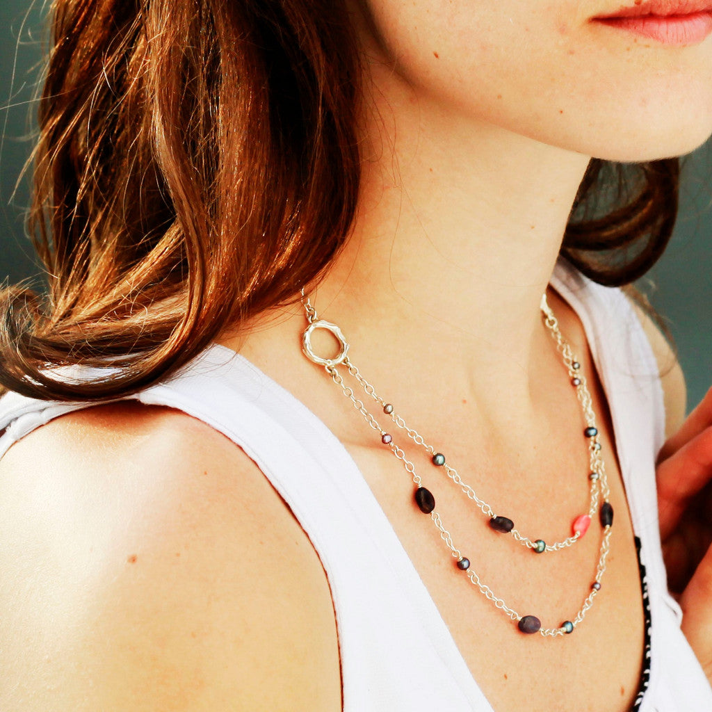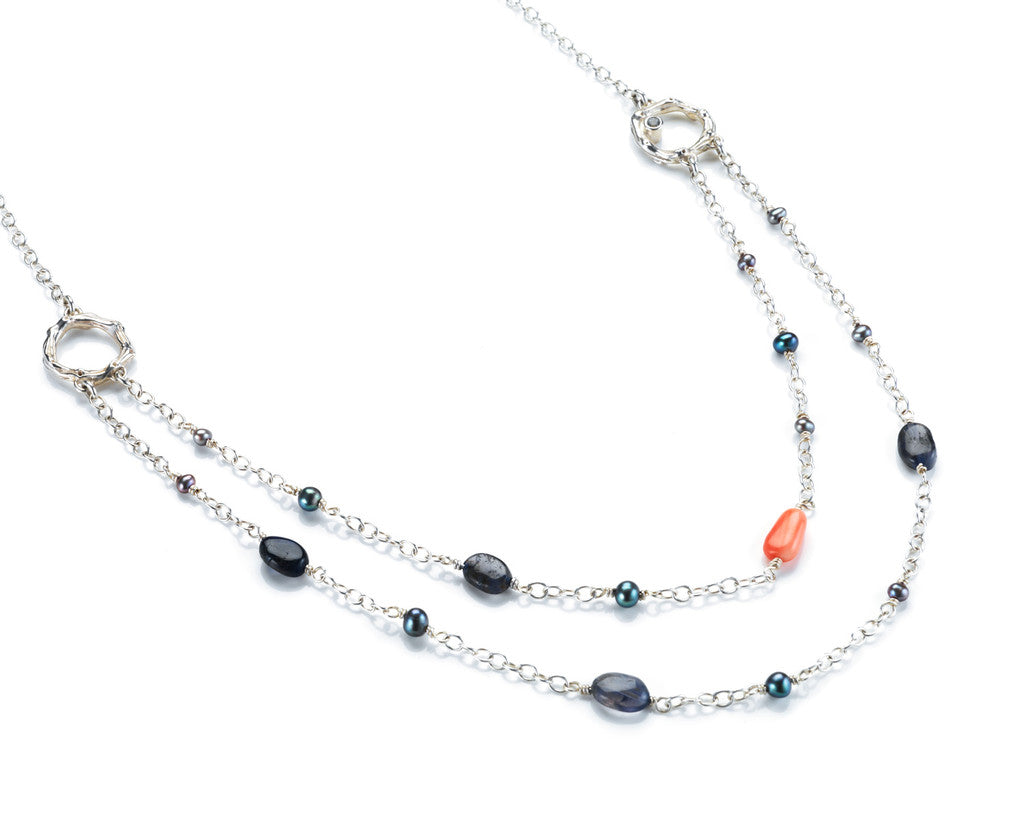 Nicole - Classic Beauty - Sterling silver / 18" / Aquamarine, iolite, sea bamboo and freshwater pearls. is backordered and will ship as soon as it is back in stock.